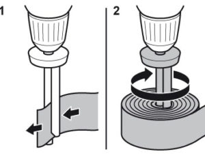 - Verktyget kan med fördel ställas på sin spets på flaket och får då automatisk styrning på bandet och en jämnt lindad rulle.